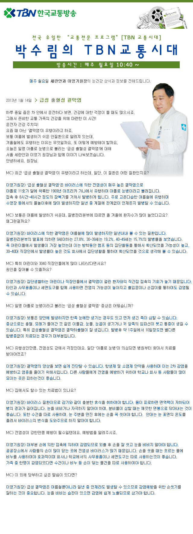 2013/01/14 급성 출혈성 결막염 - 언론보도