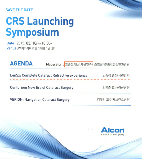 알콘(Alcon)社가 개최하는 CRS Launching Symposium에