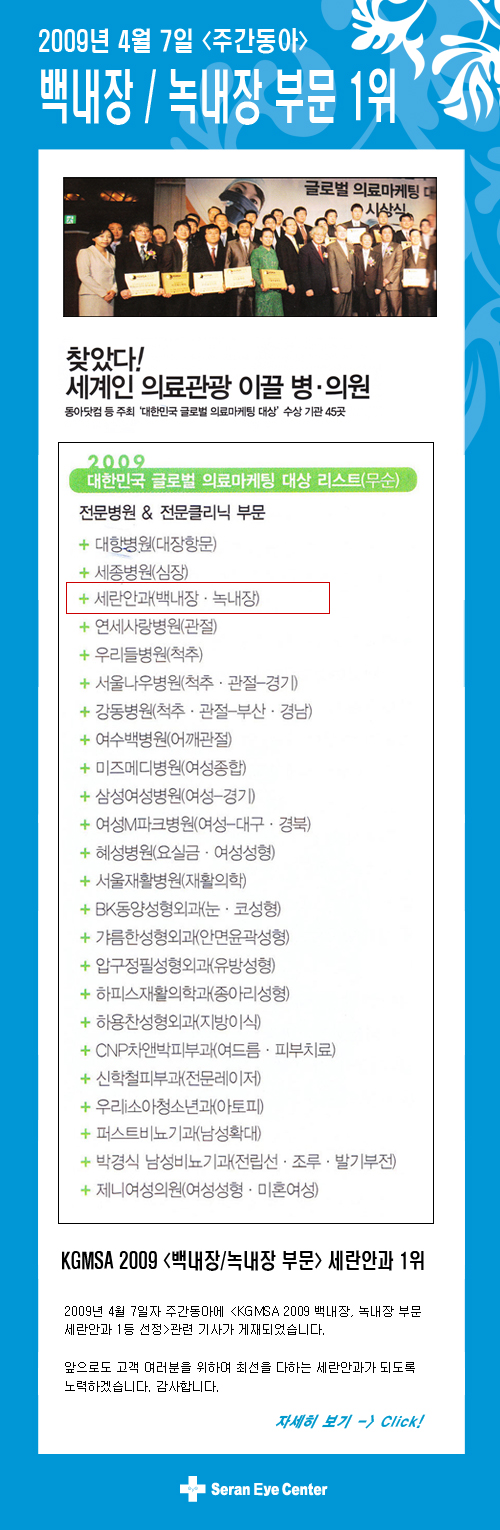 [주간동아] KGMSA 세란안과 1위 기사 게재 - 병원소식