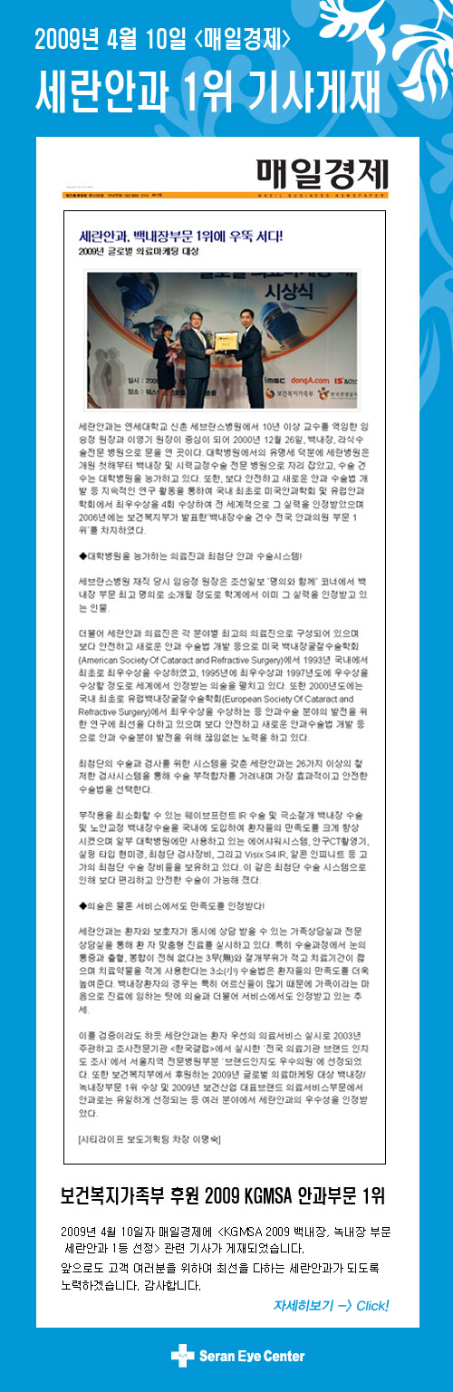 2009 KGMSA 안과부문 1위 기사게재 - 병원소식