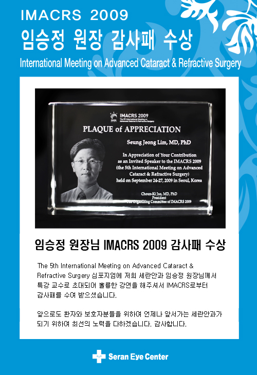 임승정원장님 IMACRS 2009 감사패 수상 - 병원소식