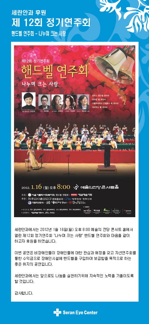 세란안과 연주회 후원 - 병원소식