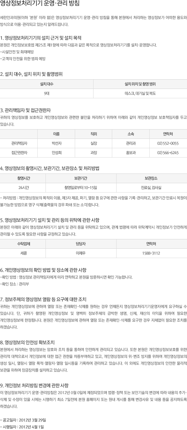 영상정보처리기기 운영·관리 방침 - 병원소식