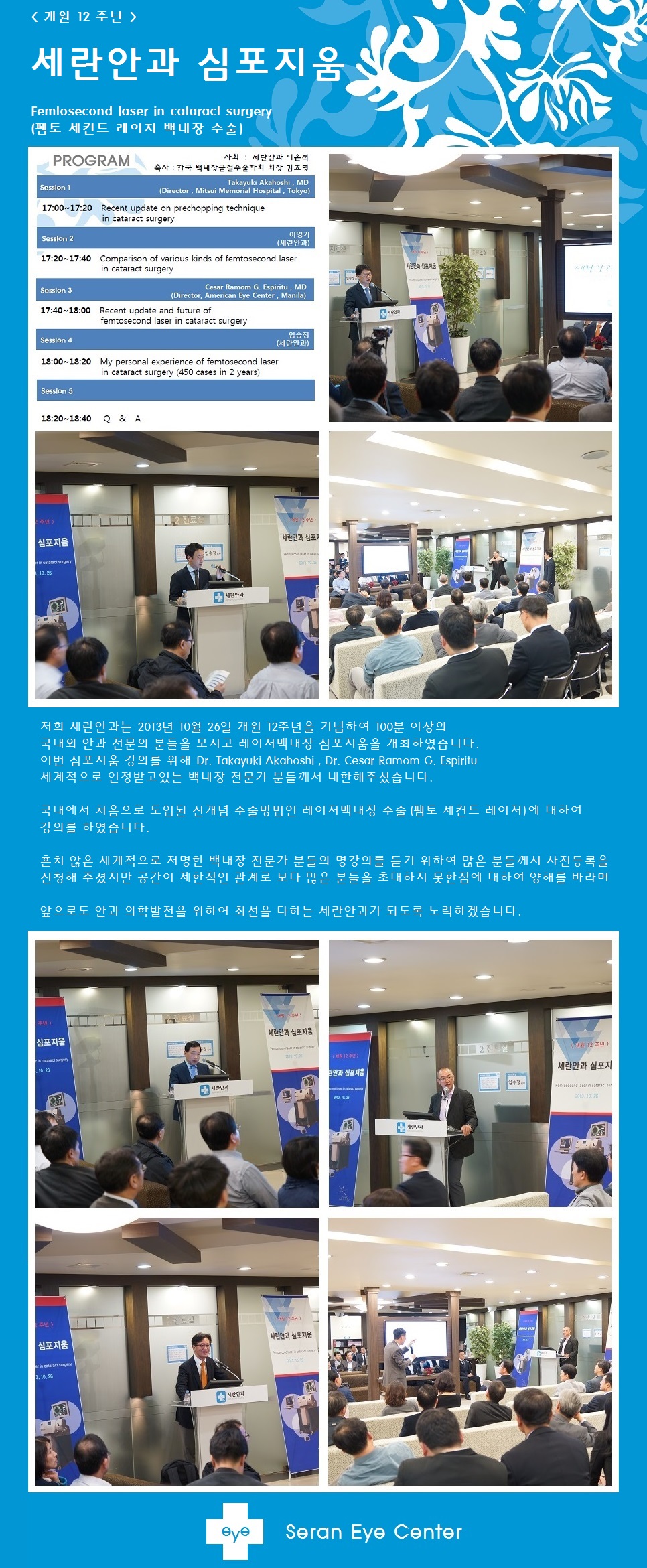 [2013년 10월 26일] 세란안과 12주년 기념 심포지엄 개최