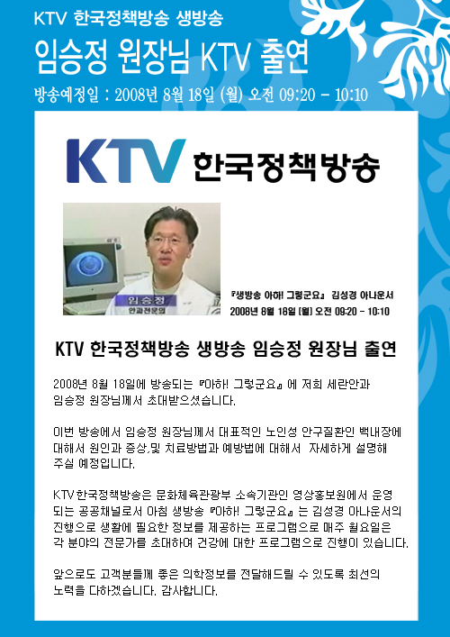 [한국정책방송 KTV] 임승정 원장님 출연 - 병원소식