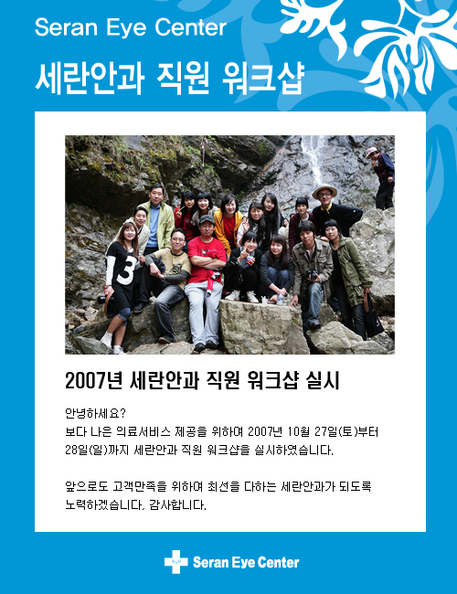 2007년 세란안과 직원 워크샵 실시 - 병원소식